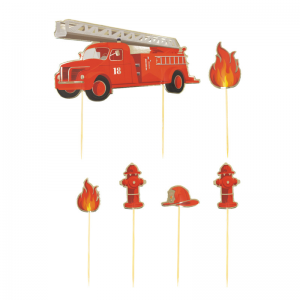 DECOR DE GATEAU/CAKE TOPPER - Pompier x 6 (en carton 8cm)