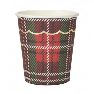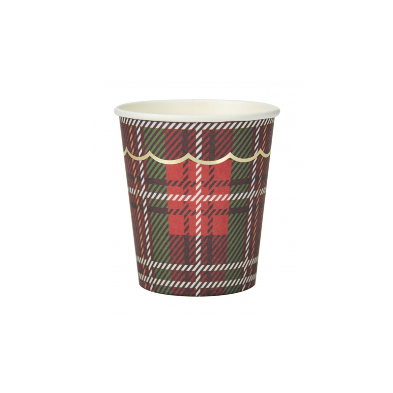 GOBELET/VERRE - Festonné tartan/écossais bord doré x 8 (en carton 20cl)