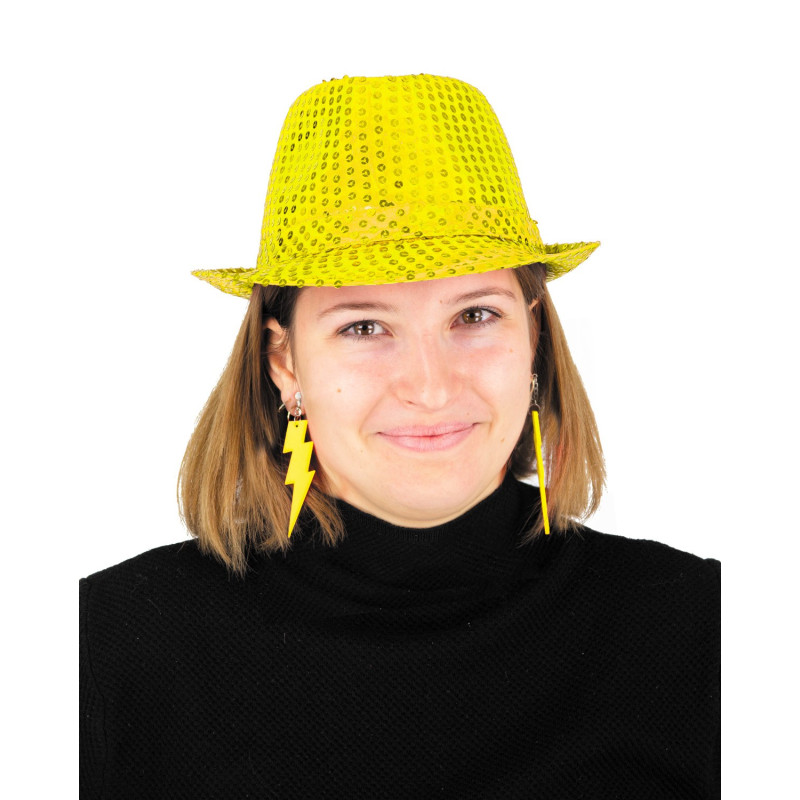 BOUCLE D'OREILLE - Flash jaune fluo (à clip)