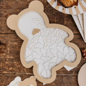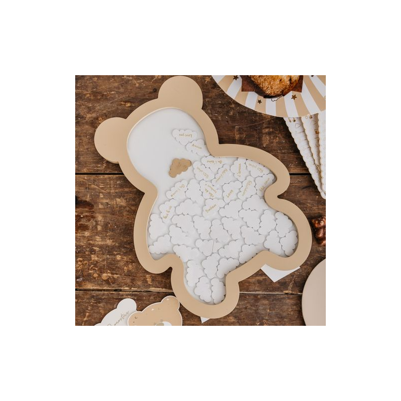 LIVRE D'OR/CADRE - Ourson/nounours avec 45 nuages (en bois 30cm x 40cm)