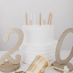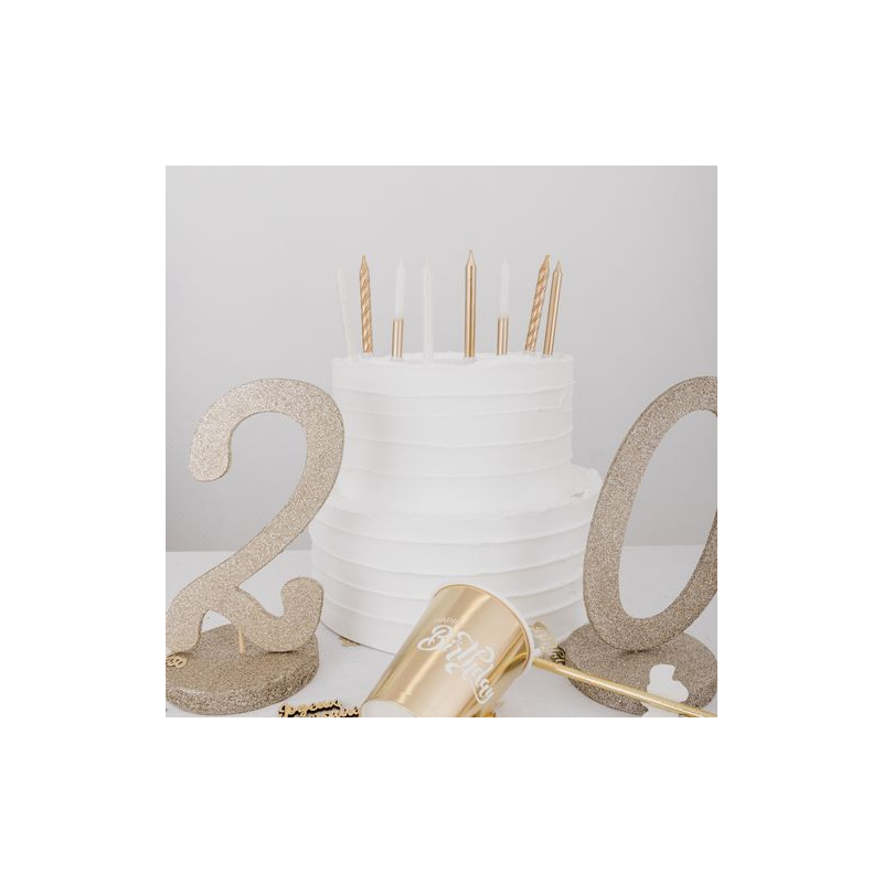 BOUGIE - Or/doré/gold et blanche x 8 (avec bobèche 7.8cm)
