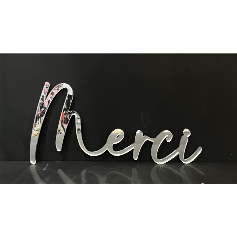 LETTRAGE/MOT - Merci argent (en troglass 23cm x 12cm)