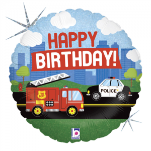 BALLON MYLARD - Pompier et police "Happy birthday" (rond 46cm) - H 1€50