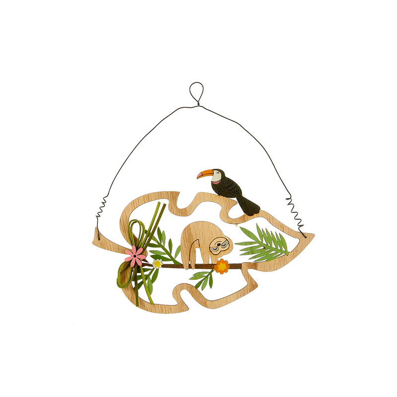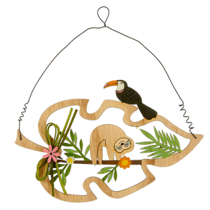 DECOR - Feuille, paresseux et toucan (en bois 20cm)