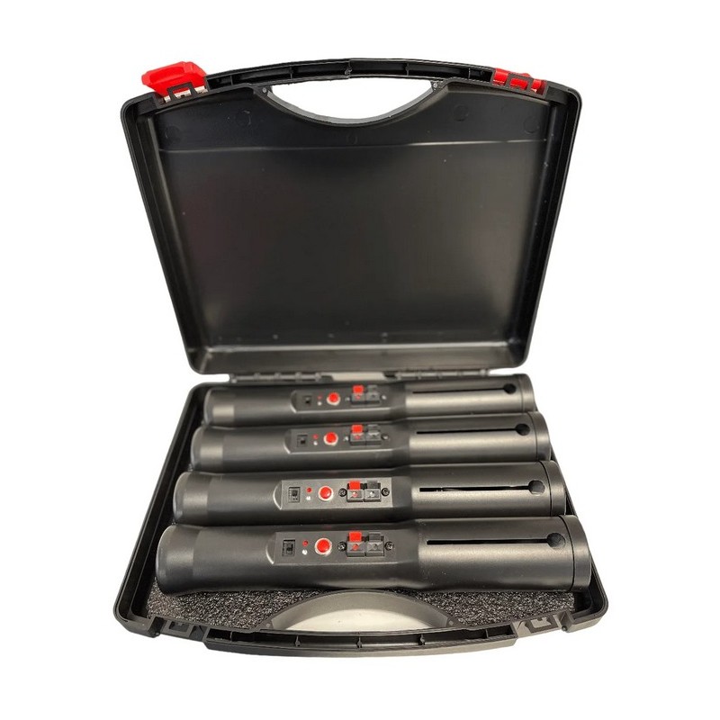 Votre location comprend : - 4 déclencheurs à main - 4 piles - Boite de rangement