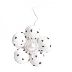 PIQUET/TIGE - Rose blanche à pois noir x 10 (en tissu 3cm)