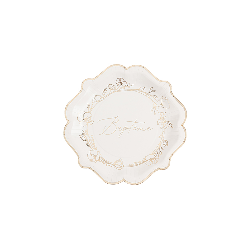ASSIETTE - Baptême collection feuillage doré x 8 (en carton 23cm)