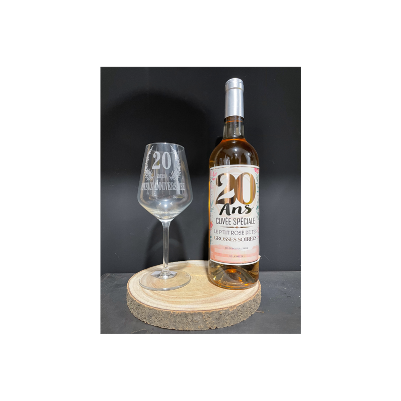VERRE A VIN - 20 ans avec sa couronne de laurier (20cm 30cl)