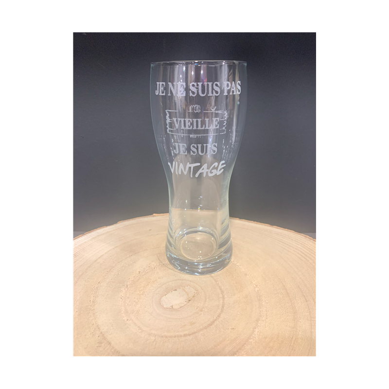 VERRE À BIÈRE - Je ne suis pas vieille, je suis vintage (en verre 16.5cm 30cl)