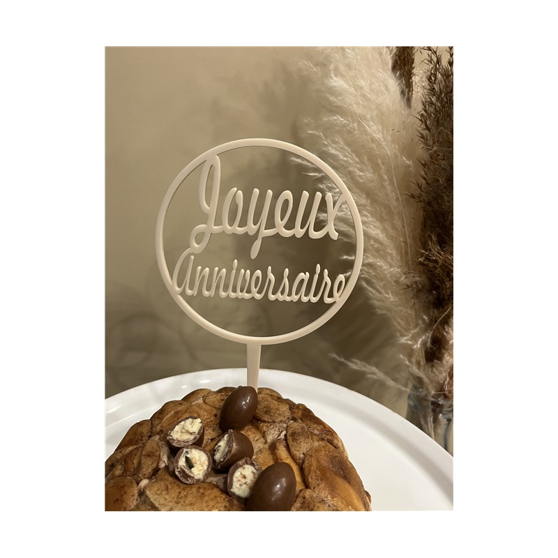 TOPPER - Joyeux anniversaire lin (en troglass 12cm x 22.5cm)
