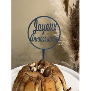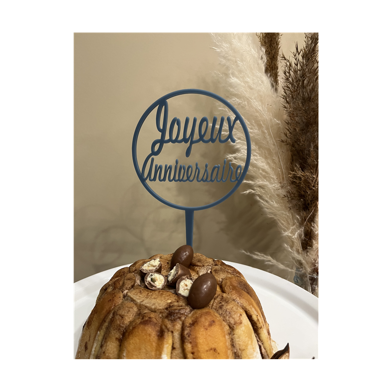TOPPER - Joyeux anniversaire bleu jeans (en troglass 12cm x 22.5cm)