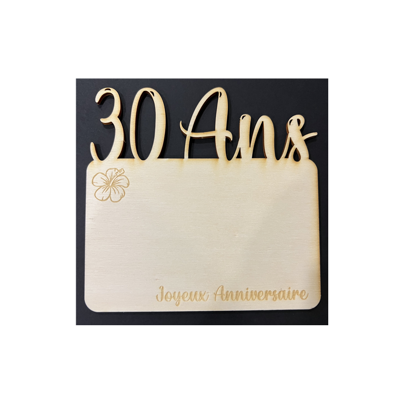 Carte bois - 15/15cm - 30 Ans - Fleur d'hibiscus