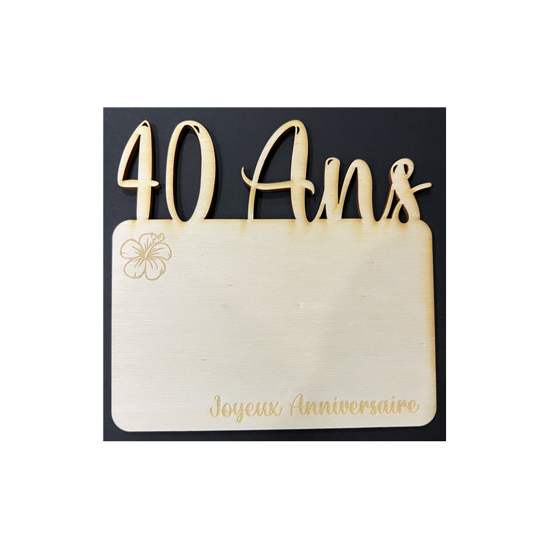 Carte bois - 15/15cm - 40 Ans - Fleur d'hibiscus