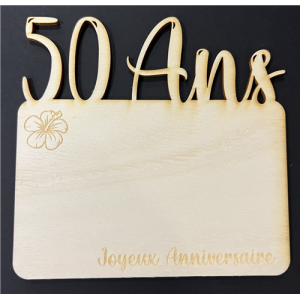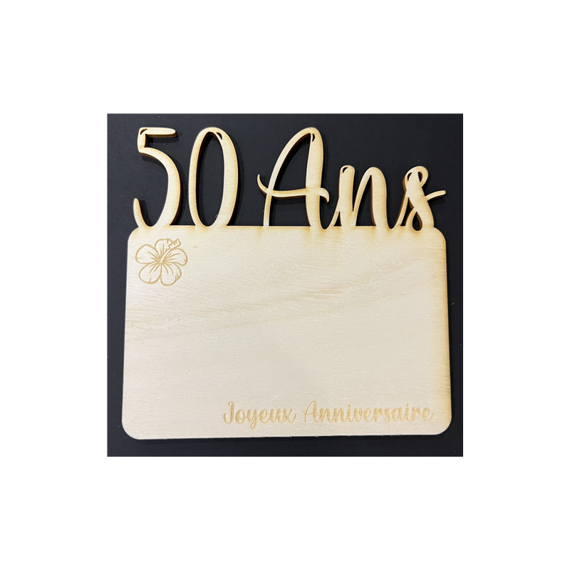 Carte bois - 15/15cm - 50 Ans - Fleur d'hibiscus