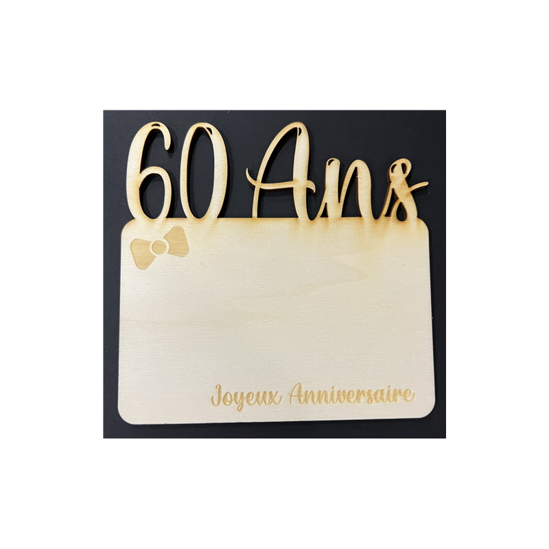 Carte bois - 15/15cm - 60 Ans - Noeud papillon