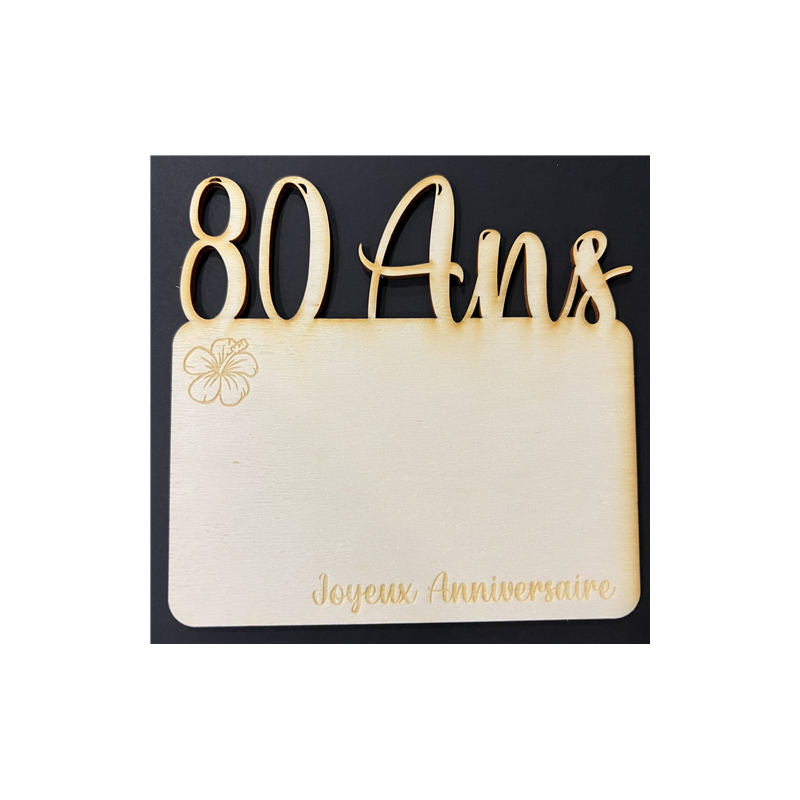 Carte bois - 15/15cm - 80 Ans - Fleur d'hibiscus