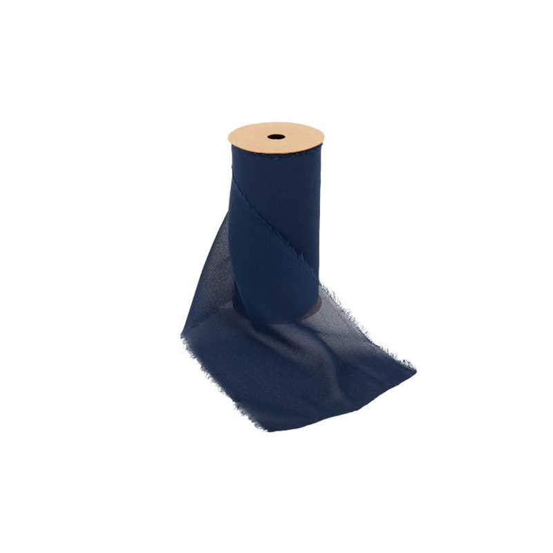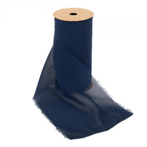 RUBAN/CHEMIN DE TABLE - Bleu marine (en mousseline effiloché 15cm x 3m)