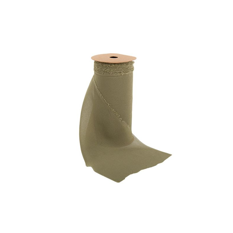 RUBAN/CHEMIN DE TABLE - Vert olive (en mousseline effiloché 15cm x 3m)