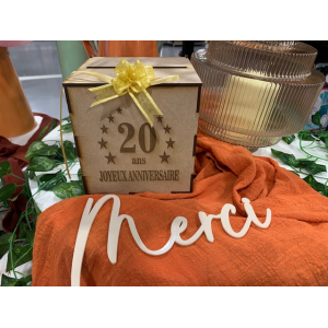 URNE/TIRELIRE - 20 Ans avec sa couronne d'étoile (en bois 15cm x 15cm) .