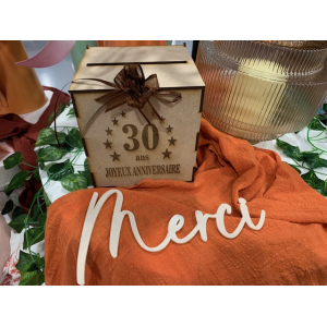 URNE/TIRELIRE - 30 Ans avec sa couronne d'étoile (en bois 15cm x 15cm) .