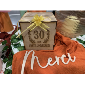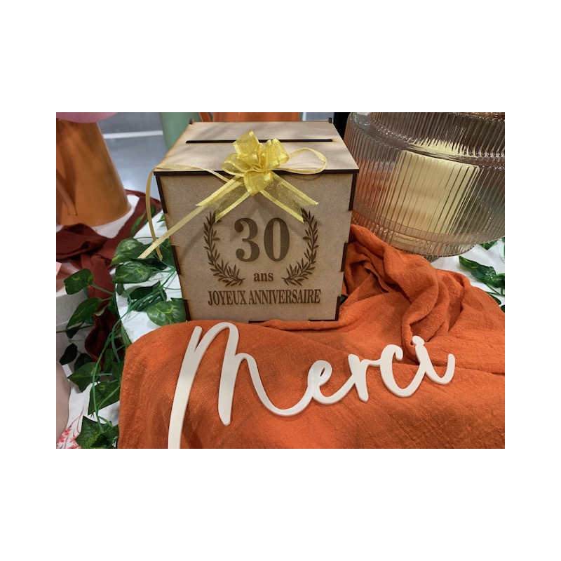 URNE/TIRELIRE - 30 Ans avec sa couronne de laurier (en bois 15cm x 15cm) .