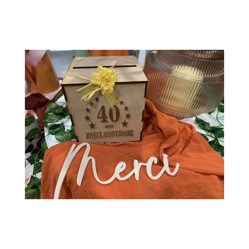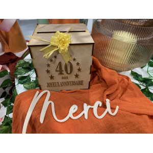 URNE/TIRELIRE - 40 Ans avec sa couronne d'étoile (en bois 15cm x 15cm) .
