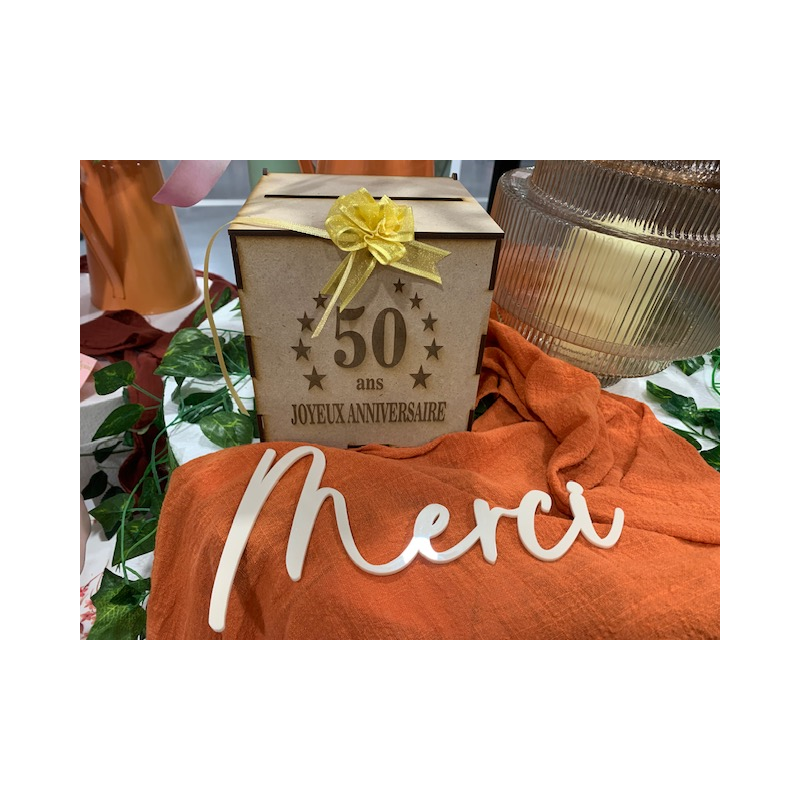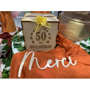 URNE/TIRELIRE - 50 Ans avec sa couronne d'étoile (en bois 15cm x 15cm)
