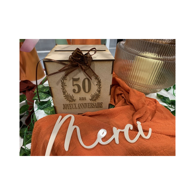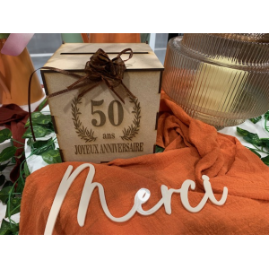 URNE/TIRELIRE - 50 Ans avec sa couronne de laurier (en bois 15cm x 15cm)