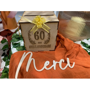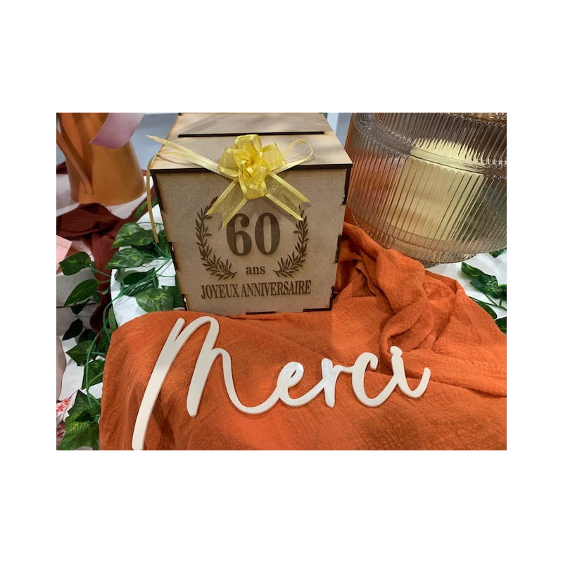 URNE/TIRELIRE - 60 Ans avec sa couronne de laurier (en bois 15cm x 15cm)