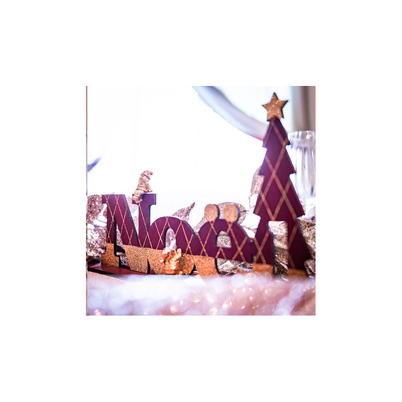 CENTRE DE TABLE - Noël marsala et or (en bois 20cm)