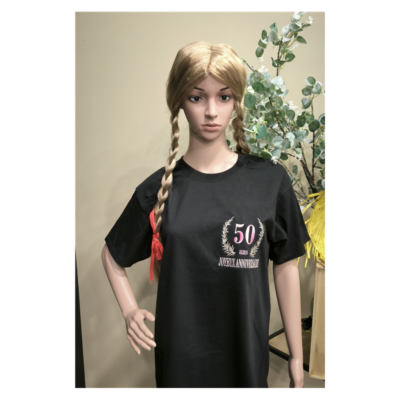 Voilà le tee shirt indispensable pour fêter dignement le passage au demi siècle! Avec sa petite broderie, ce tee-shirt est idéal pour faire la fête ou pour sortir siroter un cocktail ... Son petit plus, il est personnalisable... N'hésitez pas à vous rapprocher de notre Atelier Broderie en magasin.