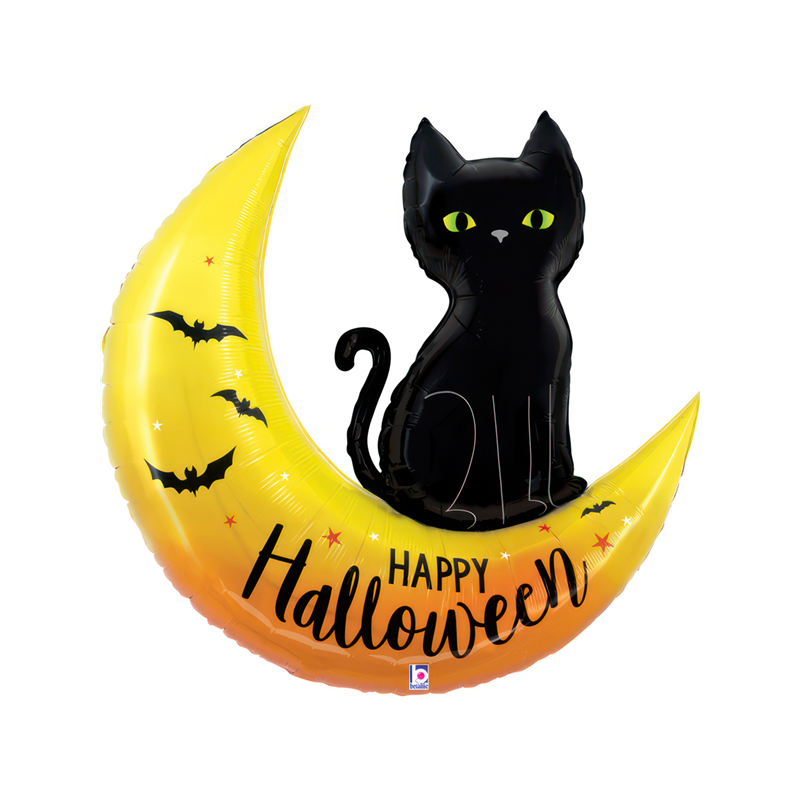 BALLON MYLARD - Happy Halloween chat noir sur lune (76cm) H 3€50