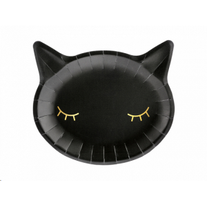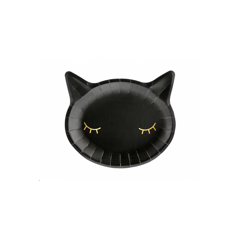 ASSIETTE - Chat avec cils dorés x 6 (en carton 20cm x 22cm)