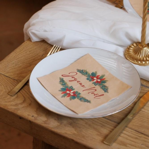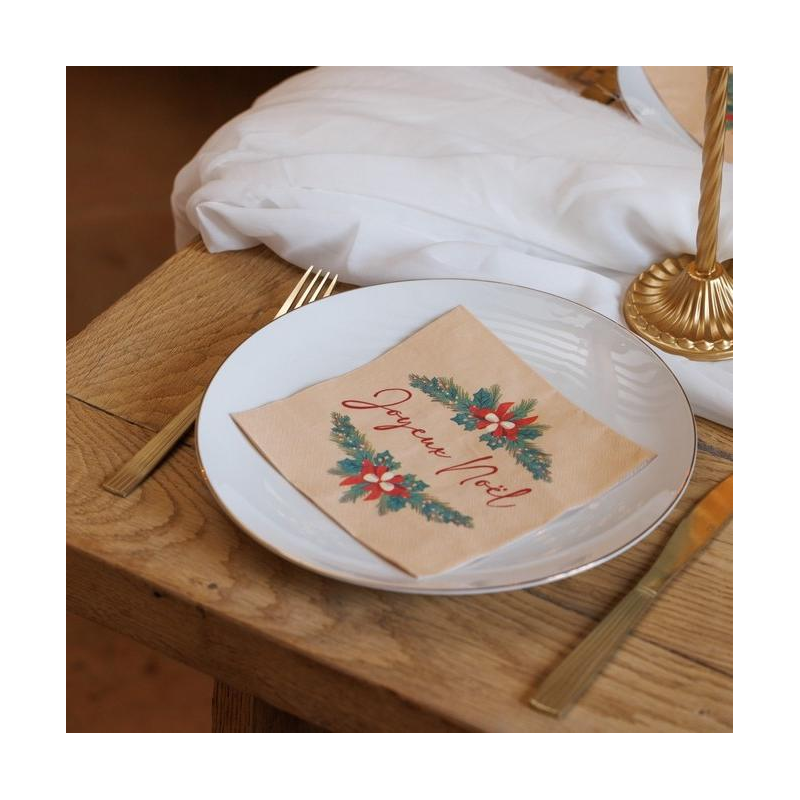 SERVIETTE - Joyeux Noël "collection poinsettia et sapin vintage" x 20 (32cm x 32cm)