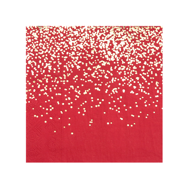 SERVIETTE - Rouge avec confettis dorés x 10 (33cm x 33cm)