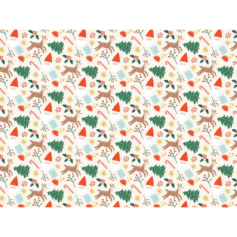 ROULEAU/BOBINE - Papier cadeau cerf et Père Noël (70cm x 2m)