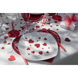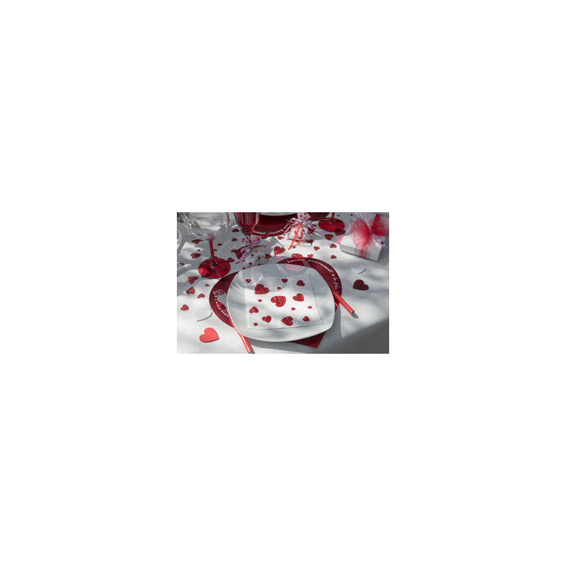 SERVIETTE - Saint-Valentin blanc avec coeurs rouge x 10 (33cm x 33cm)