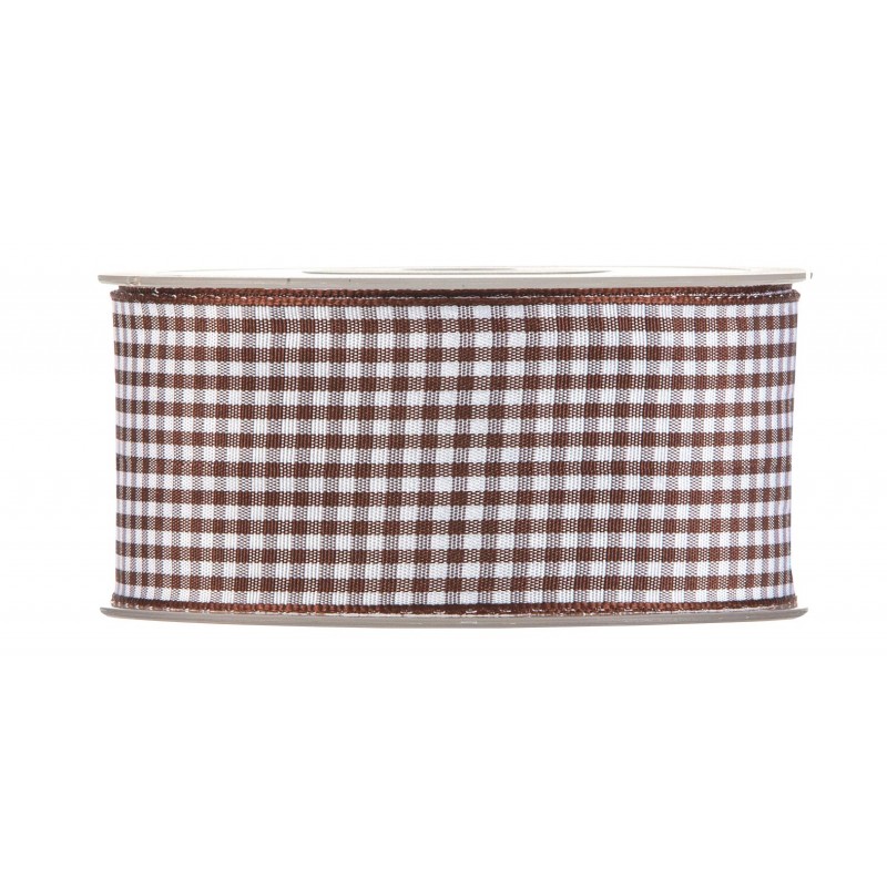 RUBAN - Vichy chocolat et blanc (4cm x 20m)