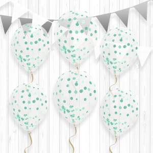 BALLON - Transparent avec confettis menthe x 6 (en latex 30cm)