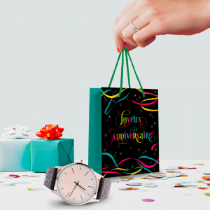 POCHETTE/SAC/CABAS - Multicouleur"Joyeux anniversaire" TMM (11cm x 14.5cm)