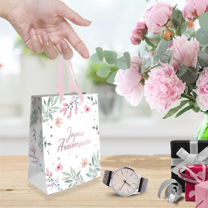 POCHETTE/SAC/CABAS - FleursJoyeux anniversaire TPM (11cm x 14.5cm)
