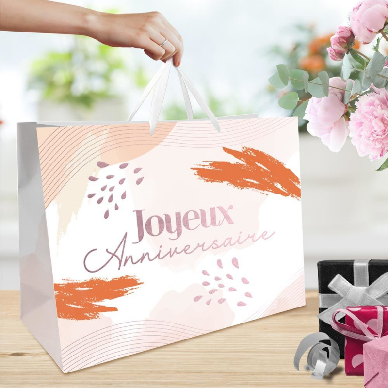 POCHETTE/SAC/CABAS - Blush"Joyeux anniversaire" HGM (50cm x 40cm)