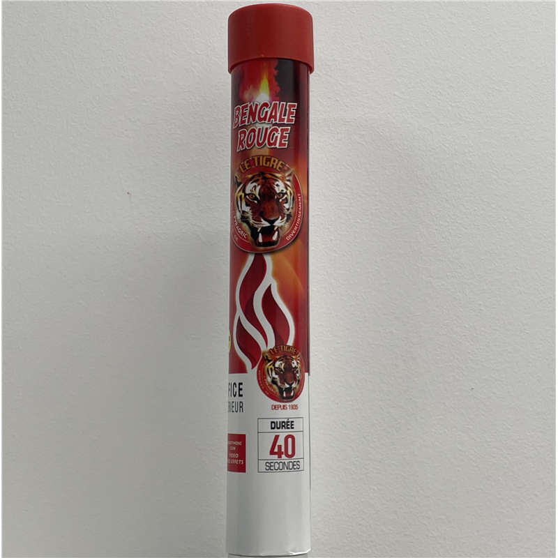 Cet artifice émet une vive flamme de couleur rouge qui dure environ 40 secondes. Idéal pour créer une belle atmosphère de lumière ou pour illuminer les événements sportifs. Un produit BEST OF de la collection Le Tigre®
