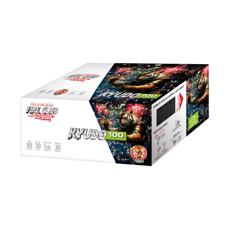 ARTIFICE - F2 - FIRE CLUB KYUDO - 100 Tirs - Durée 1min30 secondes - Hauteur 30 mètres - Distance de sécurité 50 mètres Article ni repris, ni échangé.