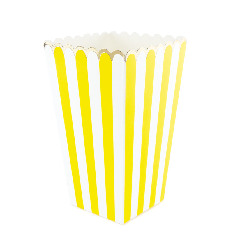 POT A POPCORN/BONBON - Rayé jaune blanc et or x 8 (en carton 12cm x 7cm)