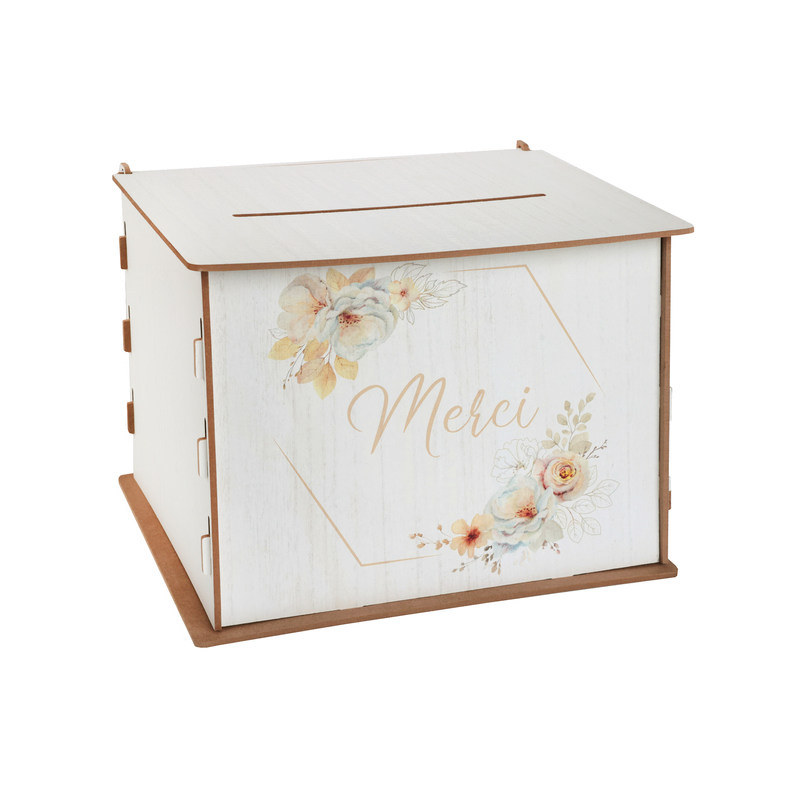URNE/TIRELIRE - Merci (en bois 24cm x 22cm)