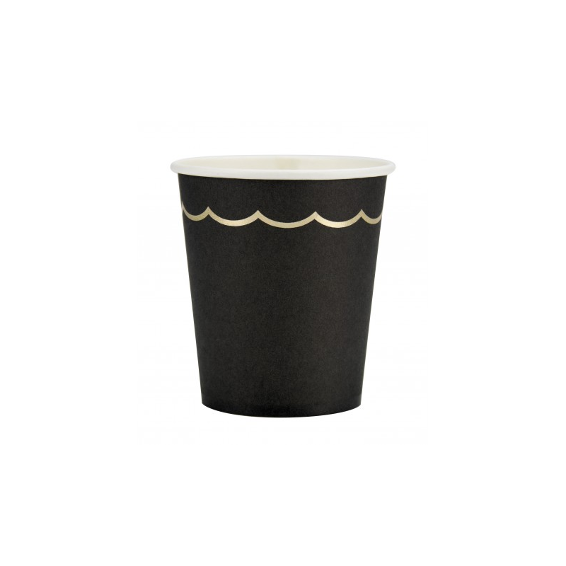 GOBELET/VERRE - Festonnée noir bord doré x 8 (en carton 20cl)