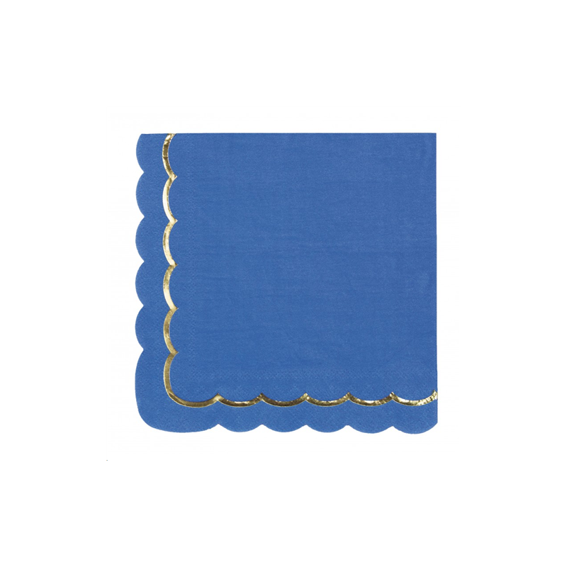 SERVIETTE - Festonnée bleu majorelle bord doré x 16 (33cm x 33cm)