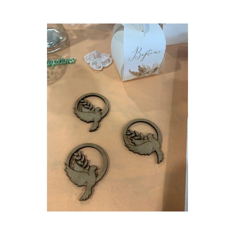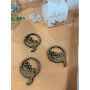 CONFETTIS DE TABLE - Colombe et épi de blé naturel x 6 (en bois 5cm)