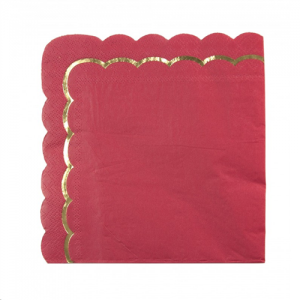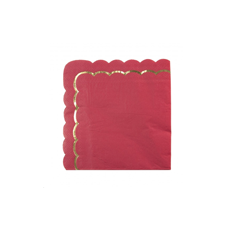 SERVIETTE - Festonnée rouge bord doré x 16 (33cm x 33cm)